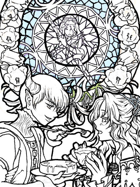そして、2人の表情にとてもとても惹き付けられました…!個人的に、私が今回の合作で伝えたいなぁと思っていたもの…「穏やか」「優しさ」「慈愛」といった情感でして、nishihoさんが描いて下さった2人の表情はまさにそれを汲み取って下さったかのようで、かつさらに深く暖かな世界に感嘆するばかりです/////////
