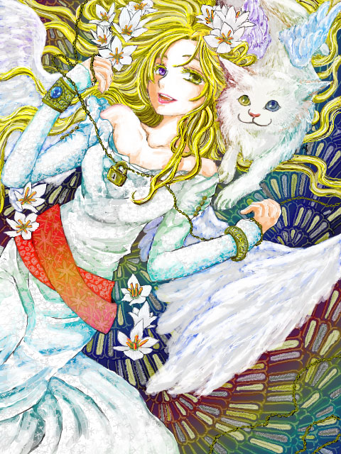 天使ちゃんの両手首を拘束するように絡ませることで、清らかな象徴へほんの少しの、”毒”を入れたつもりなのでした(笑)