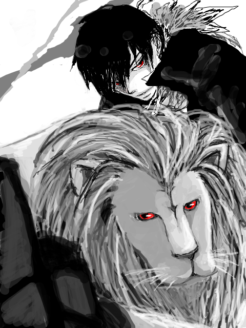 私の「ライオンと少年」(たましいのふたご)の線画を塗って頂けました・・・!!