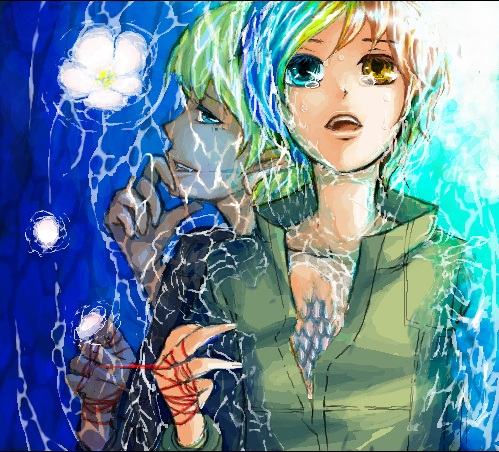 寄り添い合う二人の雰囲気が切なげながらも、どこか優しい感じだったので、出来るだけ優しい色合いで、と頑張ってみました。