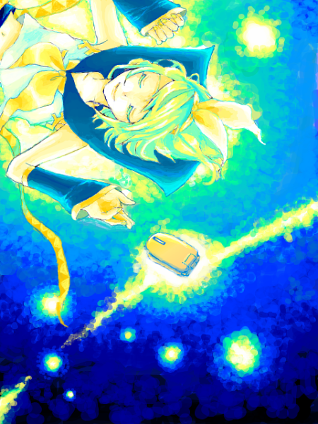 こちらは、先日頂いたおえかきバトンで描かせていただいた「レン+携帯電話」と対。