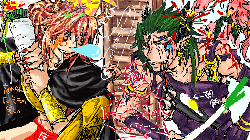 この絵を描いている傍らで、私と覇璃ちゃんとでこの二人の設定やら寸劇やらどんどこ広げてったんだけど、